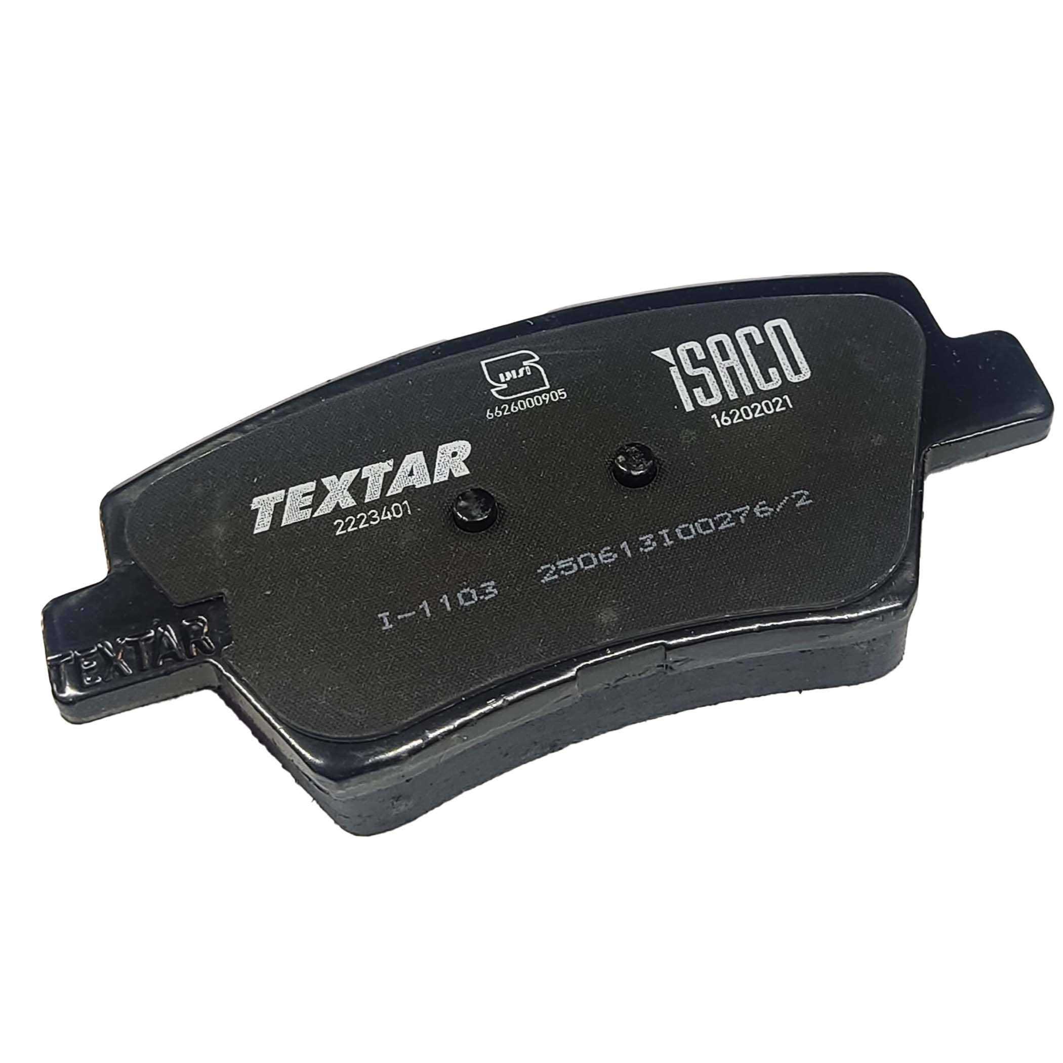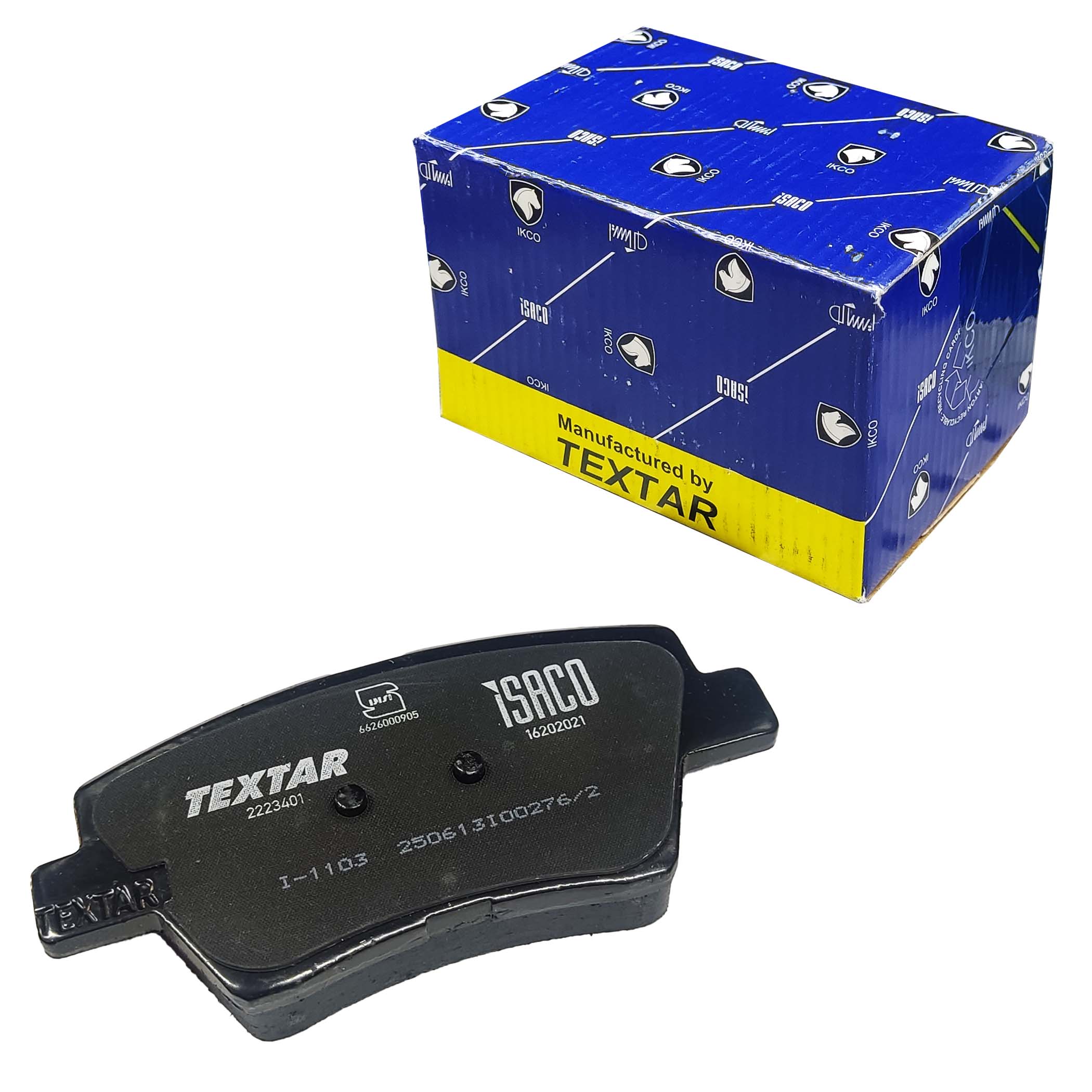 دست کامل لنت های چرخ عقب برند تکستار در بسته بندی ایساکو ، سازگار با خودرو های دنا ، دنا پلاس و پارس TU5.