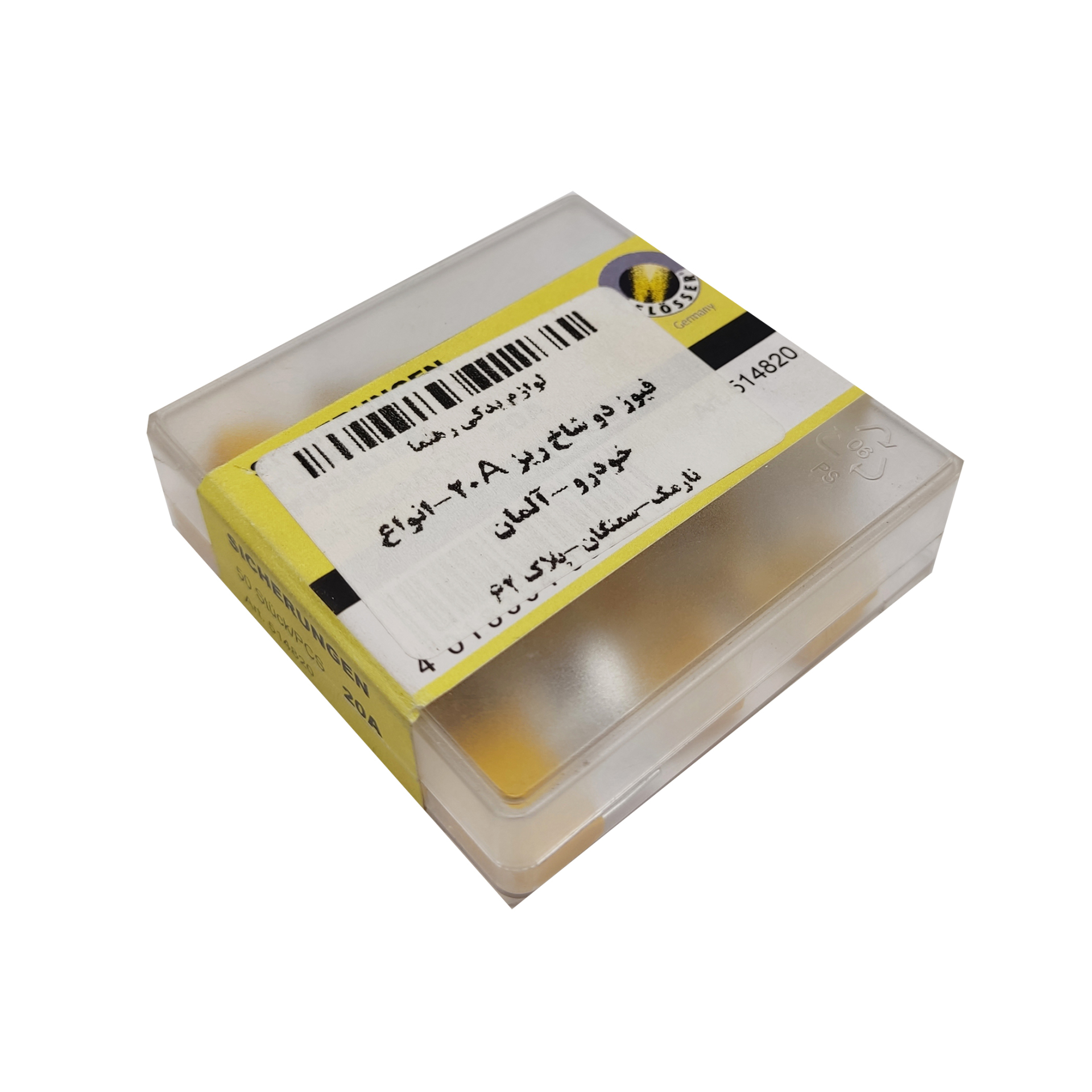 فیوز دو شاخ شیشه ای ریز 20 آمپر آلمانی از برند فلوسر ، برای حفاظت از کابل ها ، اجزای الکتریکی و سیم های خودرو