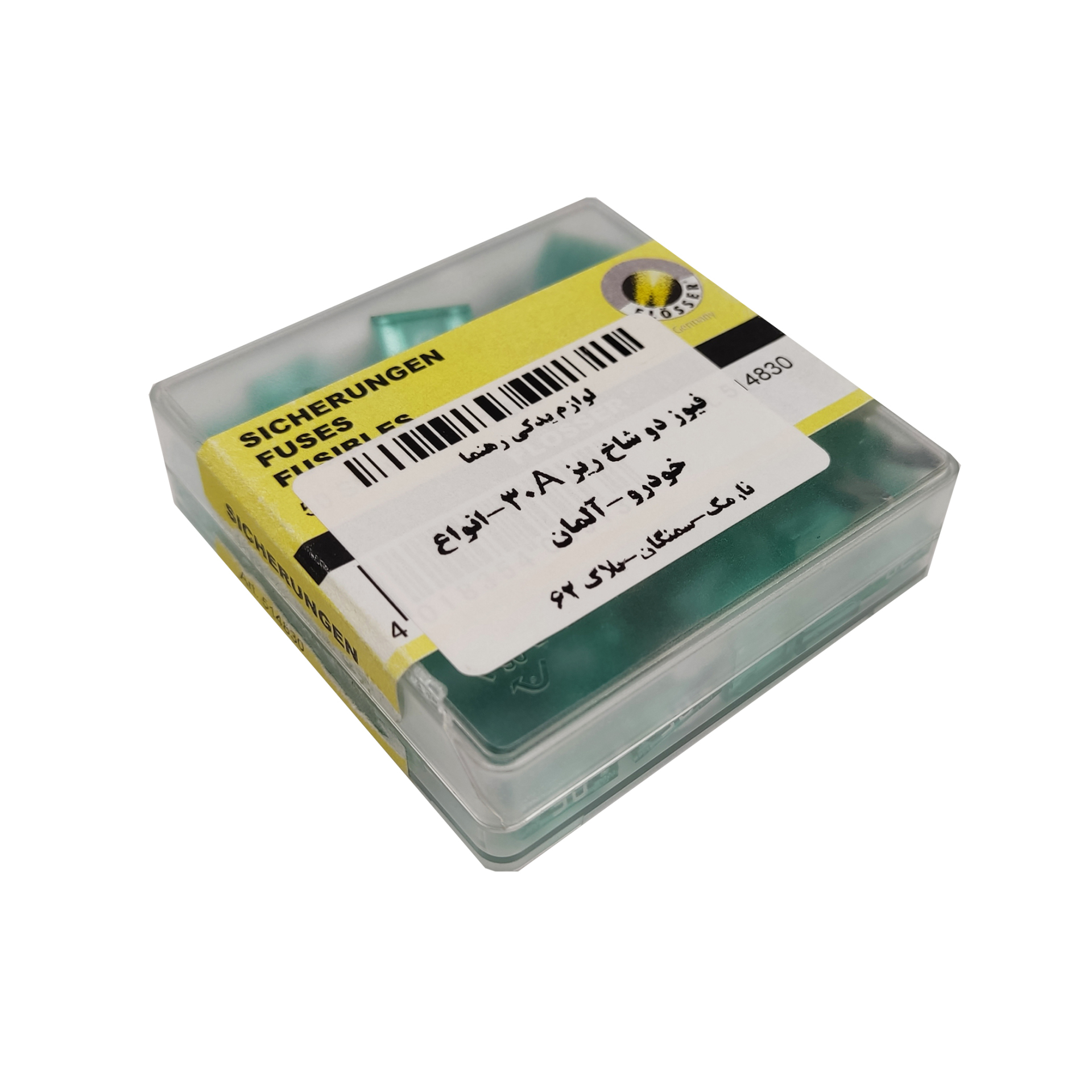 فیوز دو شاخ شیشه ای ریز 30 آمپر آلمانی از برند فلوسر ، برای حفاظت از کابل ها ، اجزای الکتریکی و سیم های خودرو.