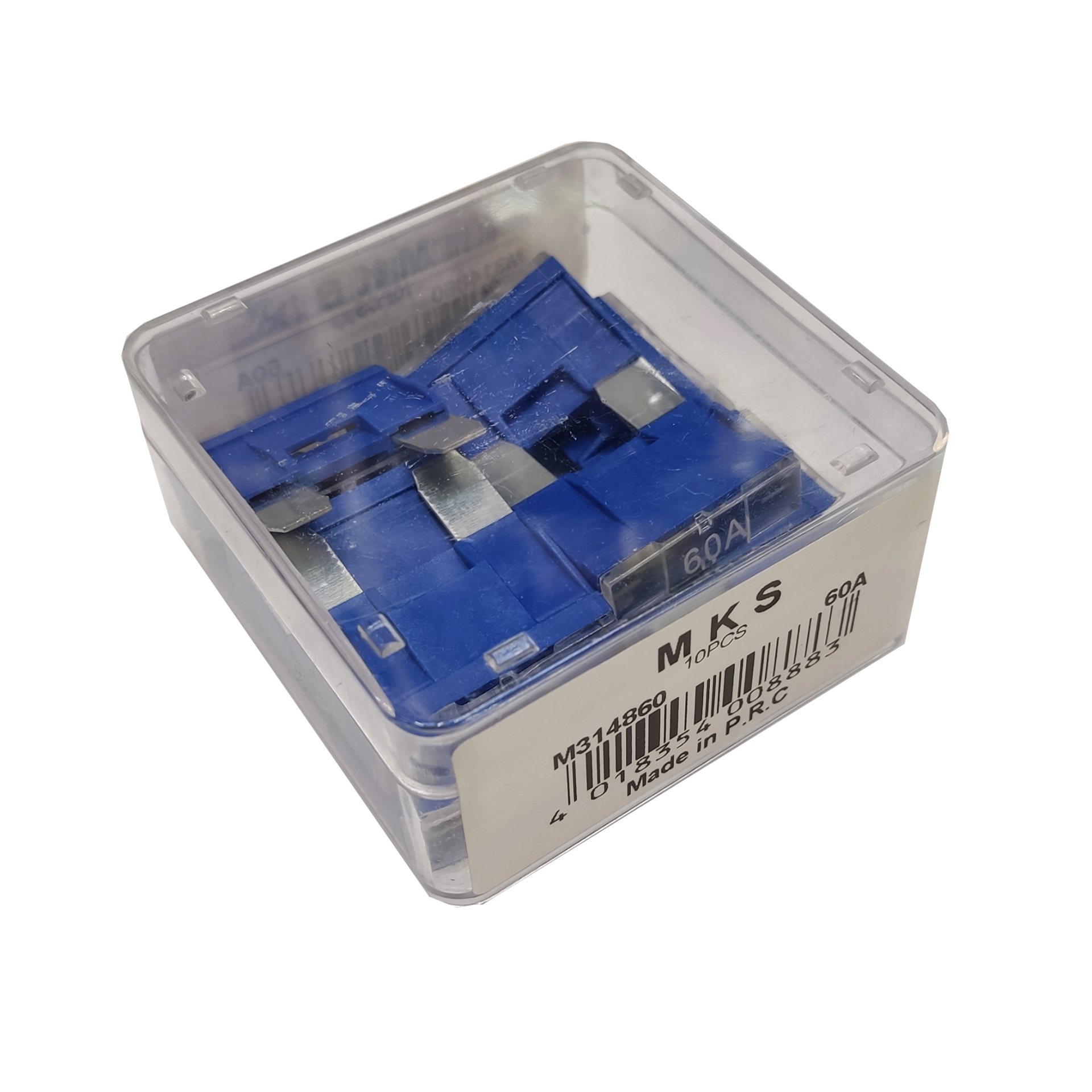 فیوز دو شاخ بزرگ 60 آمپر برند MKS ، برای محافظت از کابل ها ، اجزای الکتریکی و سیم های خودرو.
