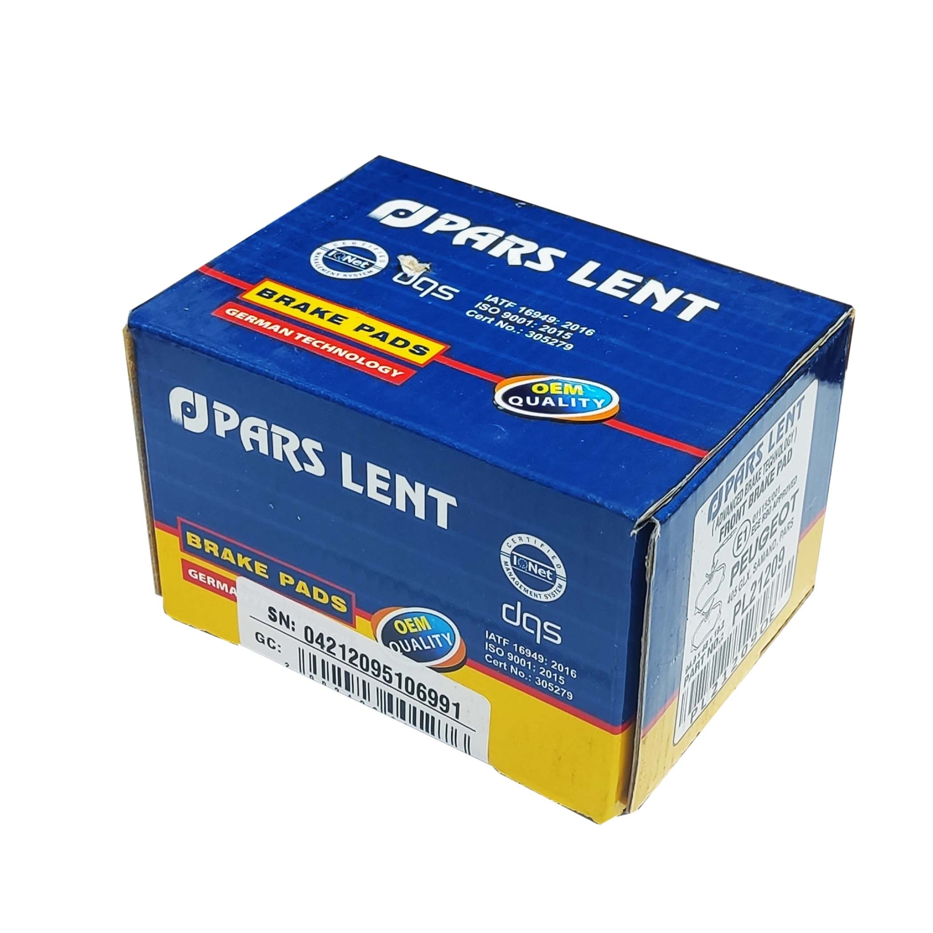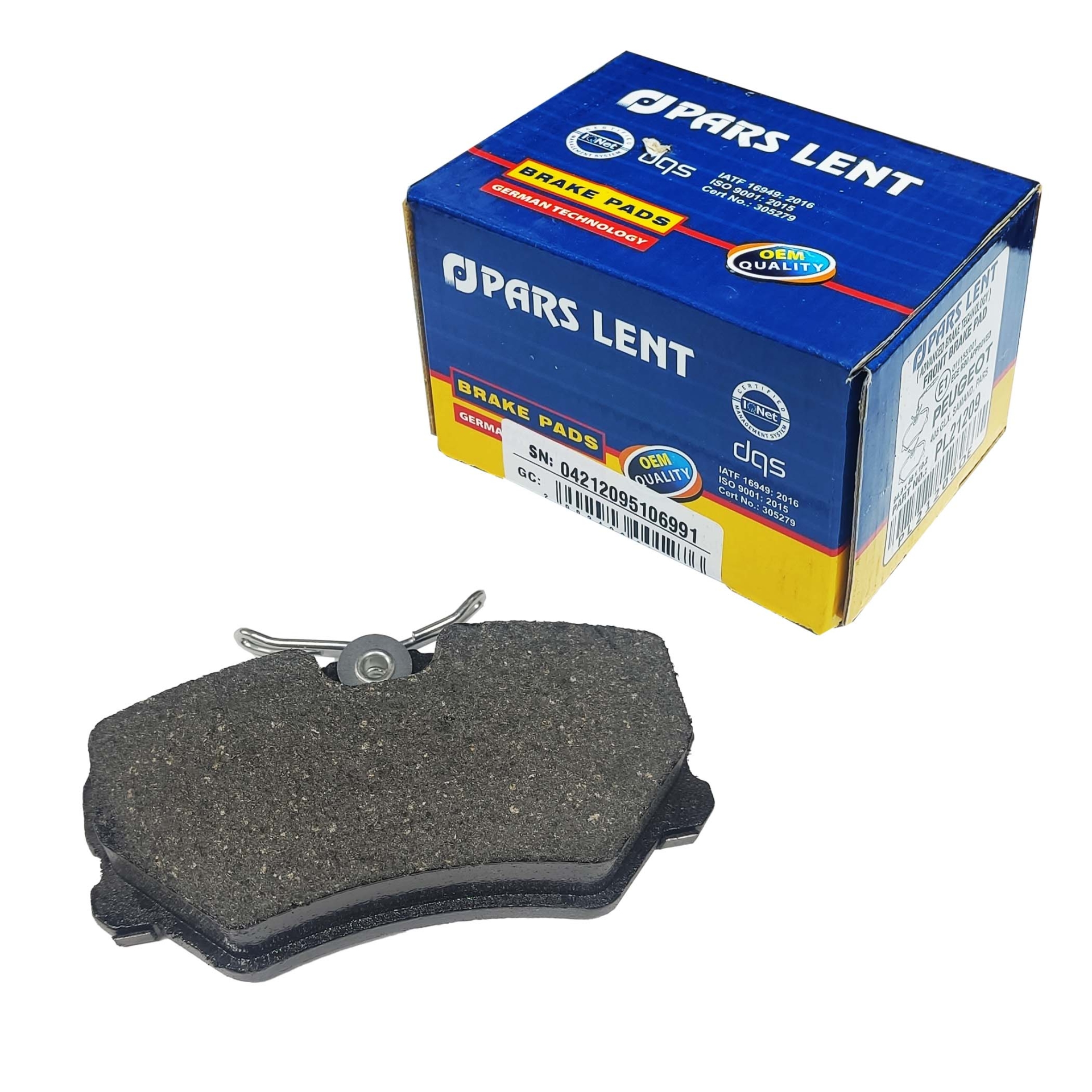 دست کامل لنت های چرخ جلو برند پارس لنت ، سازگار با خودرو های پژو 405 ، پژو پارس و سمند قدیم.