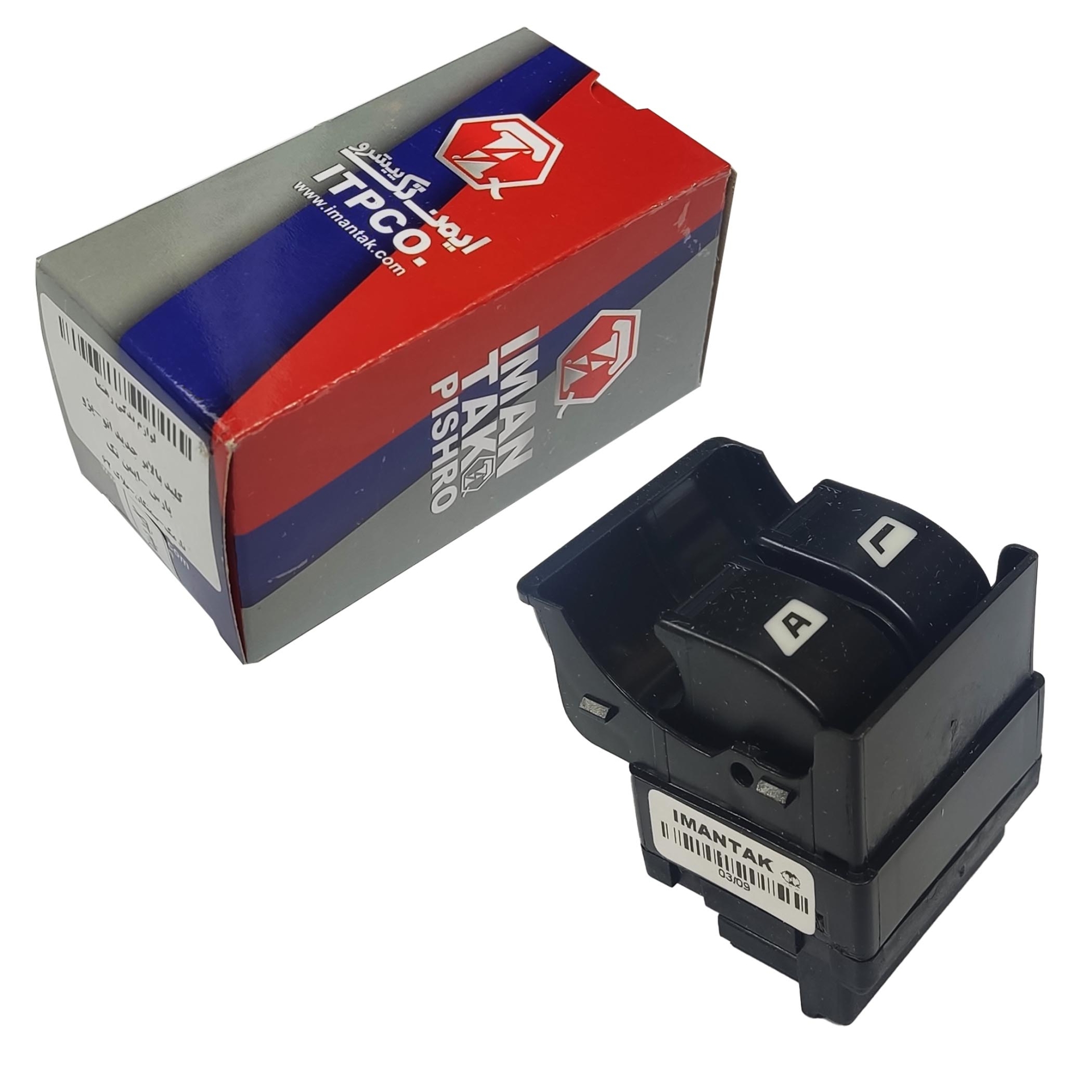 کلید شیشه بالابر اتومات سمت راننده برند ایمن تک پیشرو ، قطعه اصلی خط تولید ، مناسب برای پژو پارس.