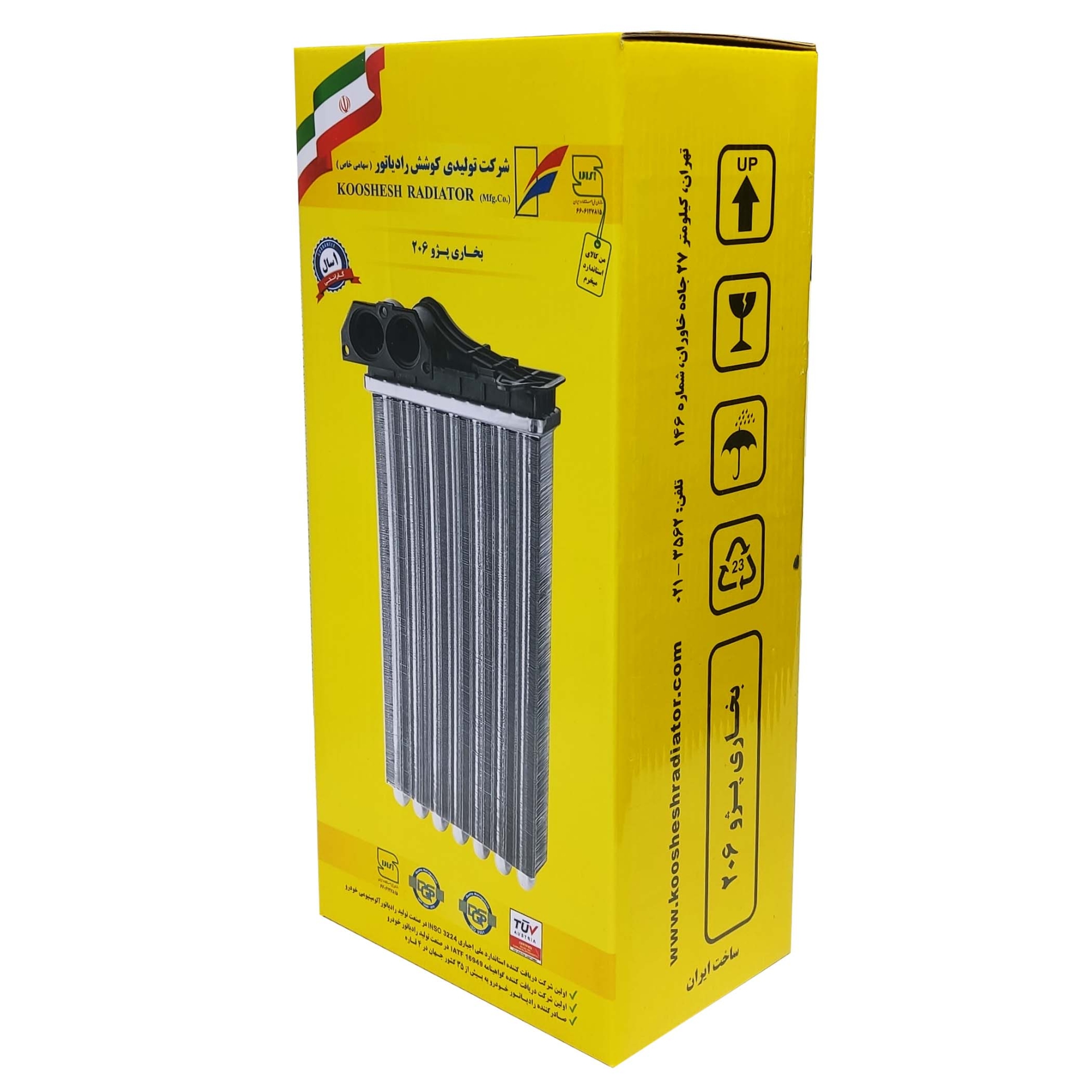 رادیاتور بخاری برند کوشش رادیاتور ، همراه با کارت گارانتی 12 ماهه شرکت ، مناسب برای تمام مدل های پژو 206 ، پژو 207 ، رانا و رانا پلاس.