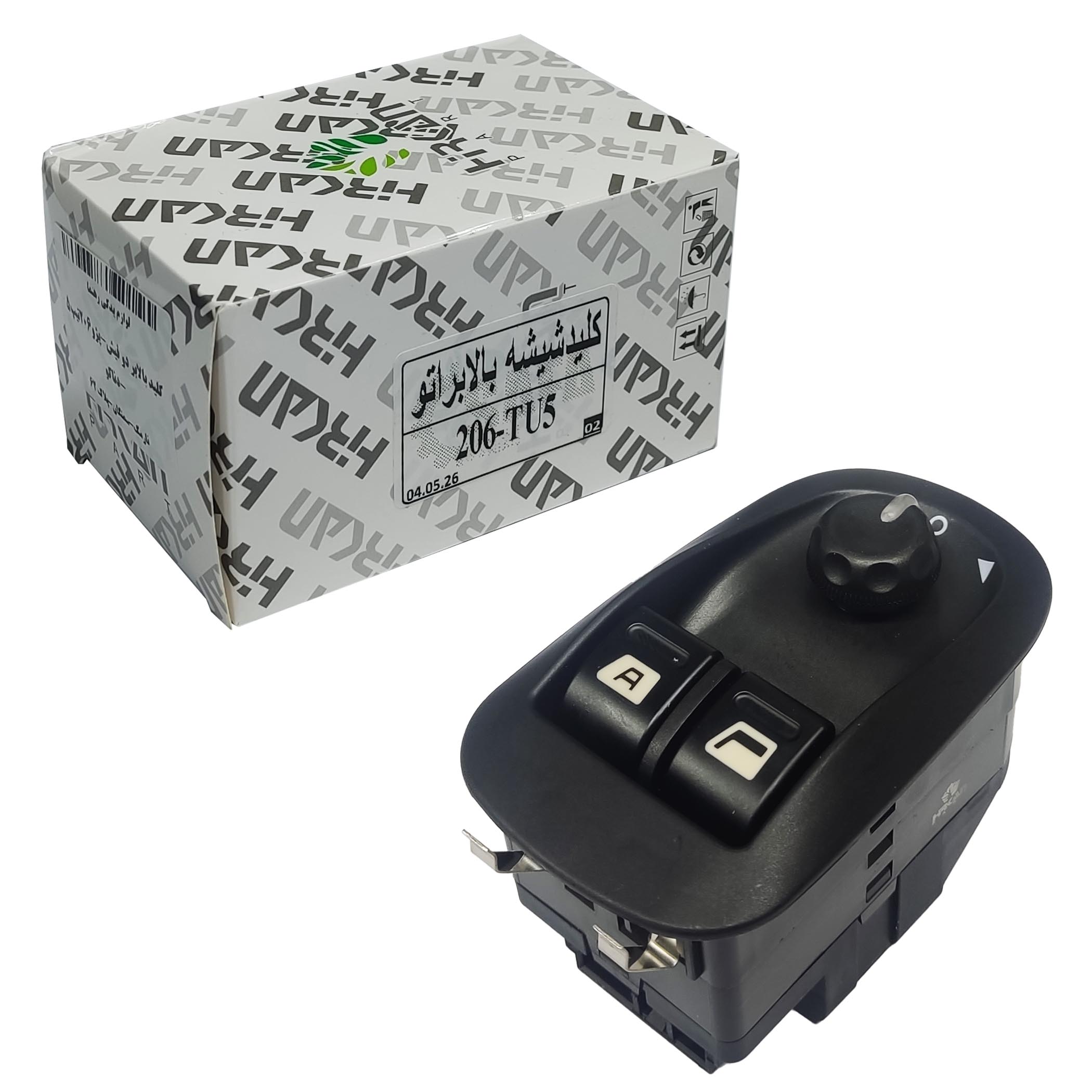 کلید شیشه بالابر دو سوکت برند هیرکان پارت ، مناسب برای پژو 206 تیپ 5 و پژو 207.